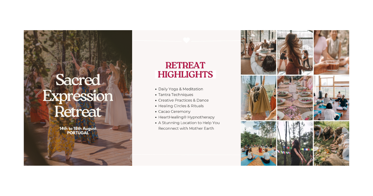 A five-day immersive journey into radical self-love, creativity, and embodied feminine power. Held in a lush forest sanctuary near Ericeira and Sintra, this retreat blends yoga, tantra, ritual, and sisterhood to guide you back to your essence. Expect deep practices, nourishing food, nature connection, and a safe space to be fully YOU.